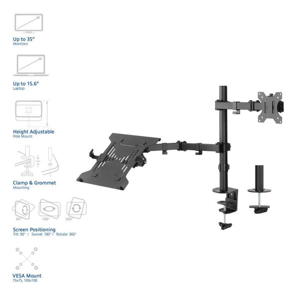 VESA 75x75 és 100x100; Könnyű képernyőfelszerelési rendszer rugalmas képernyő- és laptopbeállítással