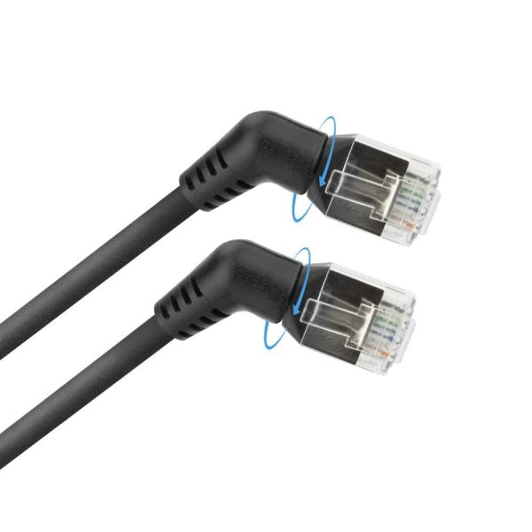 A patchkábel 360°-ban elforgatható/elfordítható RJ45 csatlakozókkal rendelkezik. Ideális olyan helyzetekben, ahol a hely korlátozott, a hajlítási sugár veszélyeztetése nélkül. Például hálózati szekrényekben és berendezések mögött.