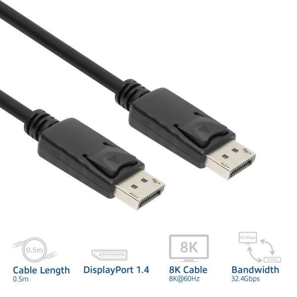 Az ACT DisplayPort 1.4 kábel kristálytiszta kép- és hangátvitelt biztosít. A DisplayPort kábel 8K @ 60Hz, 4K @ 120Hz felbontást és maximális 32,4Gbps sávszélességet támogat. A HDR-rel magasabb kontrasztarányt és gazdag színeket érj el.