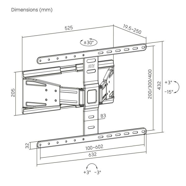 Az AC8357 teljes mozgású fali tartó 90 hüvelykes és 50 kg-os TV-k rögzítésére alkalmas. Helyezze a televíziót a falhoz közel (1,95 cm) az elegáns megjelenés érdekében, vagy húzza ki a fali konzolt (25 cm) a szobába a nagyobb kényelem érdekében.