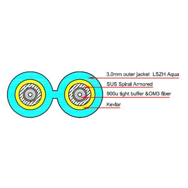 ACT Multimode 50/125 OM3 duplex armored fiber cable with LC connectors 5m Blue