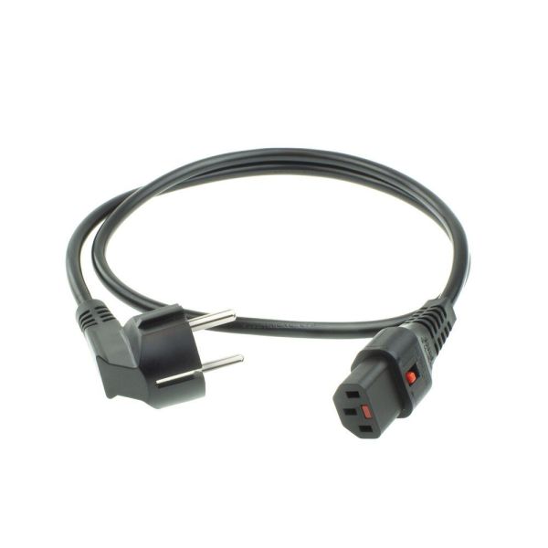 Csatlakozók: CEE7/7 hím (ferde) - C13 IEC Lock