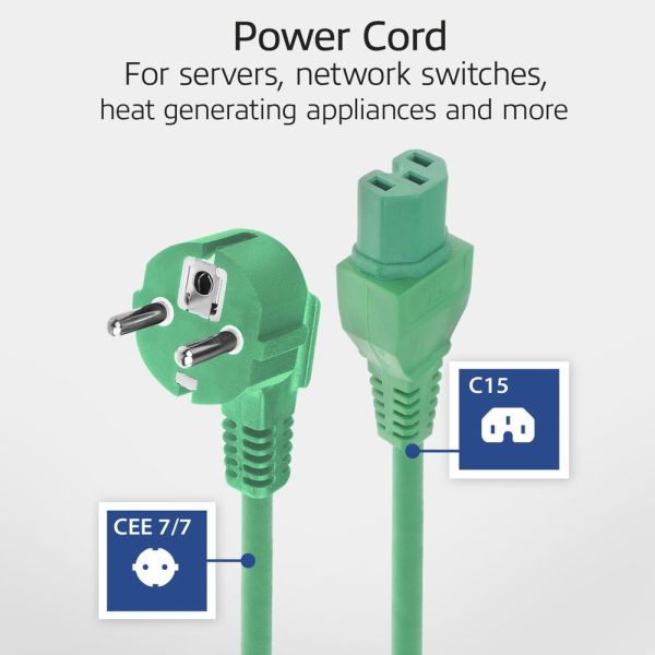 A CEE 7/7-C15 tápkábelt gyakran használják hálózati kapcsolók és szerverek táplálására. A tápkábel alkalmas hőtermelő alkalmazásokhoz.