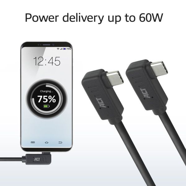 Az USB 3.0 Type-C® kábel sokoldalú megoldás USB-C eszközök csatlakoztatásához, kényelmesebb használatot biztosító szögletes csatlakozóval. A maximális adatátviteli sebesség 10 Gbps, így a kábel ideális gyors és megbízható adatátvitelre. Az USB-C kábel mindkét végén 90°-os balra/jobbra szögletes csatlakozóval rendelkezik, így rugalmasan használható különböző csatlakozási helyzetekben. A kábel támogatja a 60 W-os tápellátást és a DisplayPort Alternate módot, maximális felbontása 4K@60Hz.