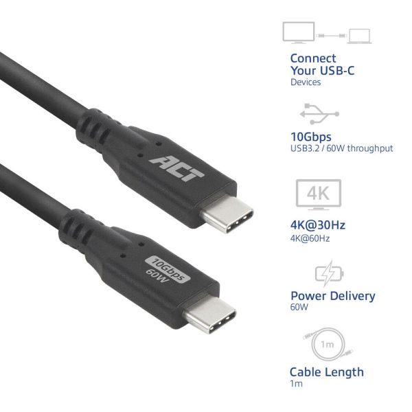 USB 3.2 | 10Gbps | USB Type-C® | 60W | 4K@60Hz | 100 cm
