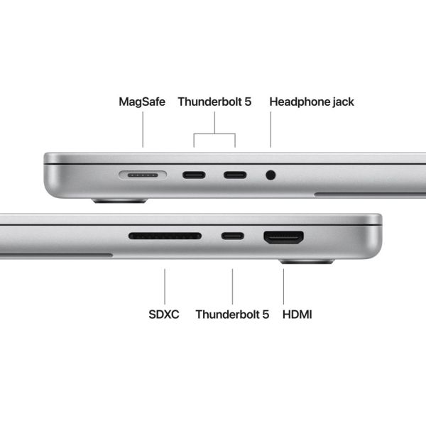 16,2", Apple M5, Apple M5 Max Chip, 48GB, Unified Memory, SSD 2048GB, LED, 3456x2234, macOS, NO DVD!, AUDIO, Apple M5 Max Chip, WLAN, Bluetooth, 3xUSB Type-C, 2,14Kg, WEBCAM, HDMI, SSD, Silver, Kártyaolvasó, 24óra, Backlight