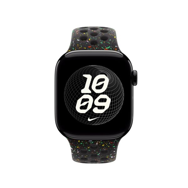 A jól szellőző, gépi sajtolással perforált Nike sportszíj tartós és erős, mégis meglepően puha. Színes szemcséi véletlenszerű mintázatot alkotnak, tökéletesen egyedivé téve minden szíjat. A kellemes tapintású anyag elegánsan mutat a csuklón, és finoman simul a bőrödre. Az alumíniumból készült bújtatós rögzítő tűje mutatós matt felületet kapott. A rögzítőbe a Nike Run Swoosh logóját gravírozták.