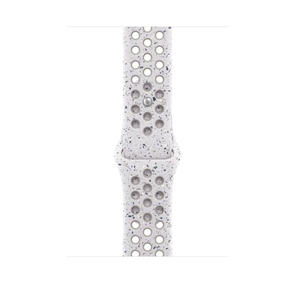 A jól szellőző, gépi sajtolással perforált Nike sportszíj tartós és erős, mégis meglepően puha. Színes szemcséi véletlenszerű mintázatot alkotnak, tökéletesen egyedivé téve minden szíjat. A kellemes tapintású anyag elegánsan mutat a csuklón, és finoman simul a bőrödre. Az alumíniumból készült bújtatós rögzítő tűje mutatós matt felületet kapott. A rögzítőbe a Nike Run Swoosh logóját gravírozták.