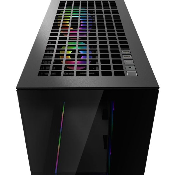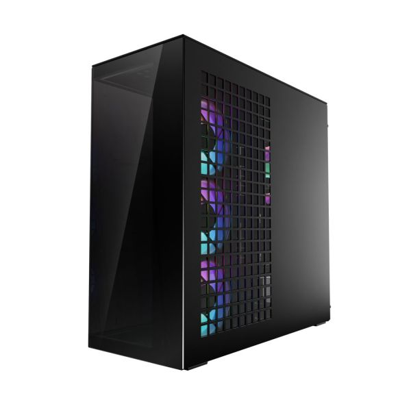 E-ATX, Black, 2x3,5", 3x2,5", 2xUSB3.2, 1xUSB Type-C, Audio, Táp nélkül, 529x529x231mm, Ventilátor:3x14cm, Tempered glass window, RGB, Gamer