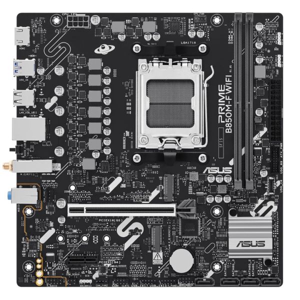 AM5, AMD B850, 2xDDR5, Max:5600MHz, Max:128GB, 2xPCIE16, 4xSATA3, RAID, 4xUSB, 2xUSB3.2, HDMI, 7.1, Gigabit, WiFi, Bluetooth, 2xM.2, Micro-ATX