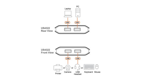 Az US4322 egy kompakt, 2-portos USB-megosztó kapcsoló, amely zökkenőmentes perifériamegosztást biztosít két számítógép között, így hatékonyságot és stílust kölcsönöz a professzionális és személyes munkakörnyezeteknek egyaránt. Intuitív plug-and-play használatával és helytakarékos kialakításával az US4322 értékes kiegészítője minden két számítógépes asztali konfigurációnak – függetlenül attól, hogy éppen dolgozik, alkot vagy több feladatot végez egyszerre. Az InstaSync™ technológiának köszönhetően egyetlen gombnyomással könnyedén válthat a rendszerek között, és irányíthatja akár két USB-perifériát is.