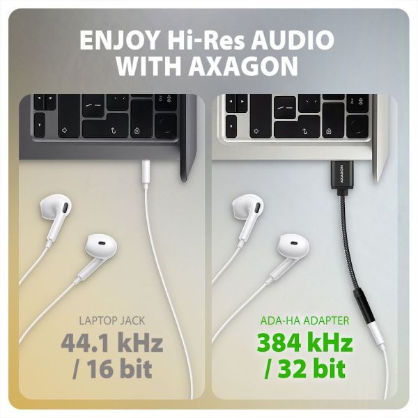 Az AXAGON ADA-HA Hi-Res DAC AUDIO ADAPTER egy praktikuskiegészítő USB-A csatlakozóval rendelkező laptopokhoz vagy asztali számítógépekhez, amelyjobb hangminőséget biztosít, mint a beépített hangkártya. Az adapter külső USB-hangkártyaként működik, Hi-Res Audio-t támogató DAC-átalakítóval, akár 384 kHz / 32 bites mintavételi frekvenciával, ami tiszta és részletgazdag hangzást biztosít.