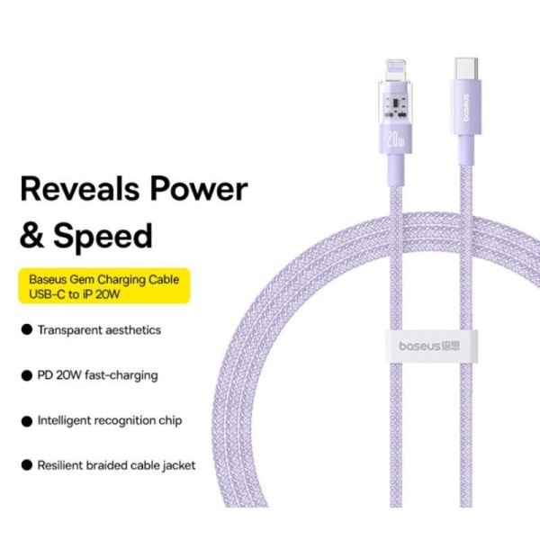 Baseus Gem USB-C to iP lightning fast charging cable 20W 2m Purple