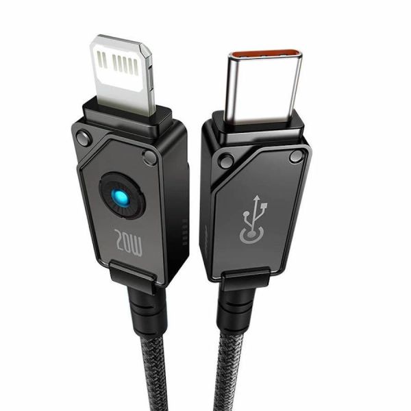 - A Baseus márkájú kábelt az Apple készülékek felhasználóinak szem előtt tartásával hozták létre. Az intelligens chipnek köszönhetően gyors töltést tesz lehetővé, akár 27 W maximális teljesítmény mellett. Emellett 480 Mbps sebességű adatátvitelt is lehetővé tesz. A terméket eredeti kialakítása különbözteti meg, hossza 2 méter