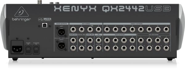 A sorozat "Big Daddy"-je a QX2442USB, 10 korszerű, XENYX-üzemű mikrofonbemenettel, 4 sztereó csatornával, 4 Aux Sends és 4 sztereó Aux Return bemenettel, valamint a könnyen kezelhető "egygombos" kompresszorokkal, inserttel és közvetlen kimenetekkel minden egyes monó csatornán. A QX2442USB exkluzívan elérhető egyéb funkciói a következők: 4 alcsoport a keverési sokoldalúság érdekében; Main Inserts (ideális útvonal grafikus equalizer vagy kompresszor/limiter csatlakoztatásához); 8 Direct Out és Sub Out analóg felvételi célokra.