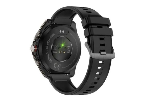 Carneo A GTR eXpedition mindössze 11 mm vastag fémházával, tartós szilikonszíjával és 1,43 hüvelykes SUPER AMOLED HD kijelzőjével (466 × 466 px) az elegáns kialakítást robusztus konstrukcióval ötvözi. Az5ATM vízállóság azt jelenti, hogy alkalmas úszásra, esőre és akár 50 méteres vízbe merítésre, míg a Gorilla Glass védi a kijelzőt a karcolásoktól. A robusztus fémváz fokozott tartóssággal bírja a terepviszonyok viszontagságait – a portól és sártól kezdve a fagyon és homokon át a váratlan helyzetekig.