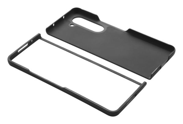 A tok két különálló részből áll, amelyek a telefon testét és a csuklós részt fedik. A tok vékony kialakítása tökéletesen tapad a telefonra, miközben védi annak széleit anélkül, hogy megváltoztatná a designt.