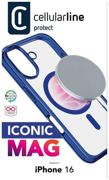 Cellularline ikonikus hátlap Magsafe támogatással Apple iphone 16 készülékhez, átlátszó/sötétkék