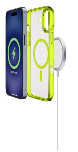 Cellularline ikonikus hátlap Magsafe támogatással Apple iphone 16 Plus készülékhez, átlátszó/lime