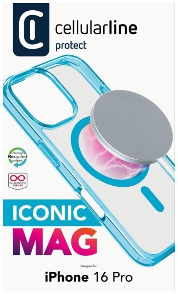 Cellularline ikonikus hátlap Magsafe támogatással Apple iphone 16 Pro készülékhez, átlátszó/világoskék