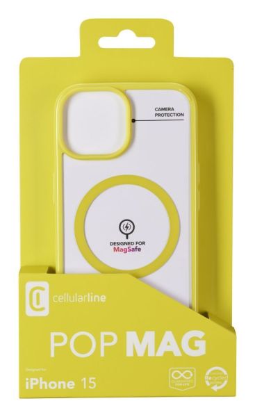 Cellularline Pop Mag Back Cover with Magsafe Support for Apple iPhone 15, Clear/Lime
