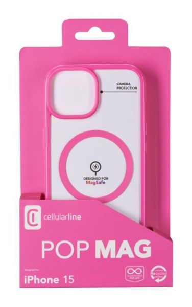 Cellularline Pop Mag Back Cover with Magsafe Support for Apple iPhone 15, Clear/Pink