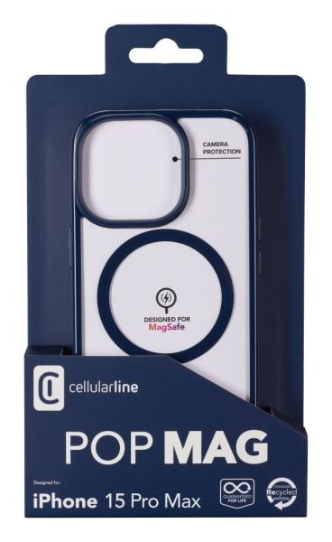 Cellularline Pop Mag Back Cover with Magsafe Support for Apple iPhone 15 Pro Max, Clear/Blue