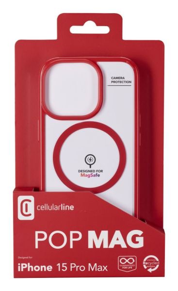 Cellularline Pop Mag Back Cover with Magsafe Support for Apple iPhone 15 Pro Max, Clear/Red
