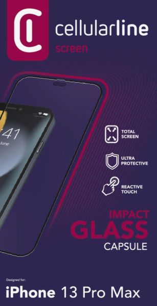 Cellularline Protective tempered glass for full screen CAPSULE for Apple iPhone 13 Pro Max, black