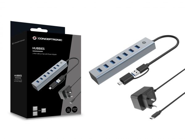 Ez a 7 portos USB 3.0 hub lehetővé teszi, hogy 7 további USB porttal bővítse eszköze USB-A vagy USB-C kapacitását! A hub segítségével könnyedén csatlakoztathat akár 7 USB-kompatibilis perifériát vagy kütyüt MacBookjához, Chromebook Pixeléhez vagy bármely hasonló, USB-A vagy USB-C porttal felszerelt, késői modellű laptopjához. Stabil és hatékony adatátvitelt biztosít, akár 5 Gbps átviteli sebességgel. A hub emellett USB-C tápcsatlakozóval is rendelkezik, amely hálózati adapterhez csatlakoztatható, és nagy teljesítményű eszközökhöz, például HDD-khez vagy SSD-khez csatlakoztatva ellátja a hubot árammal, így biztosítva a stabil teljesítményt.
