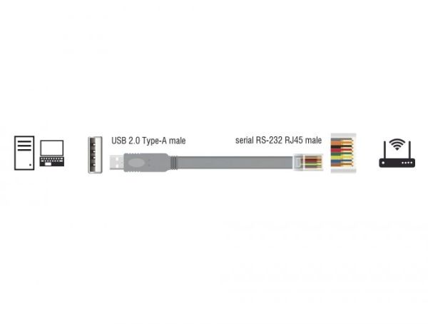 DeLock USB 2.0 Type-A male > 1 x Serial RS-232 RJ45 male 1m grey
