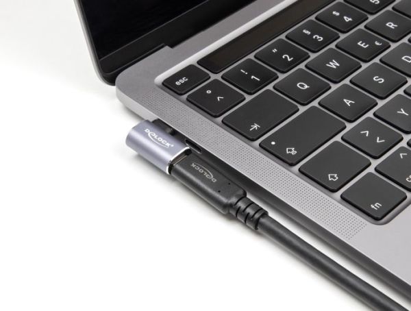 DeLock USB Adapter 40 Gbps USB Type-C™ PD 3.1 240 W male to female angled left / right 8K 60Hz metal Purple