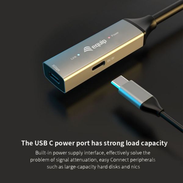 Az Equip 133356 USB-C-USB-C aktív hosszabbító kábel nagy teljesítményű megoldást kínál az USB-C csatlakozások jelveszteség nélküli meghosszabbítására. A passzív kábelekkel ellentétben ez az aktív hosszabbító kábel beépített jelerősítést tartalmaz, hogy nagy távolságokon is stabil adatátvitelt biztosítson - ideális USB-C eszközök, például külső merevlemezek, dokkolók, webkamerák és más perifériák csatlakoztatásához, ahol a közvetlen csatlakozást a hely vagy az elrendezés korlátozza.