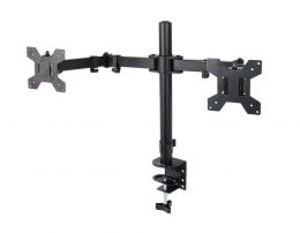 Fém, erős és stabil kétmonitoros asztali tartó Esperanza SYLEN 10" és 27" méretű monitorokhoz. Ez a tartó lehetővé teszi két monitor rögzítését egy íróasztalra, teljes körű állítási lehetőséget biztosítva az optimális látószög és magasság eléréséhez, miközben értékes asztali helyet takarít meg. Könnyen felszerelhető, és egy stabil, állítható fém bilincs segítségével rögzíthető, amely puha béléssel védi az íróasztal felületét a karcolásoktól. Kompatibilis a 75 x 75 mm-es és a 100 x 100 mm-es VESA szabványokkal. A tartó széles körű beállításokat támogat, beleértve a magasságot, a dőlést és a képernyő 360°-os elforgatását minden egyes monitor esetében.