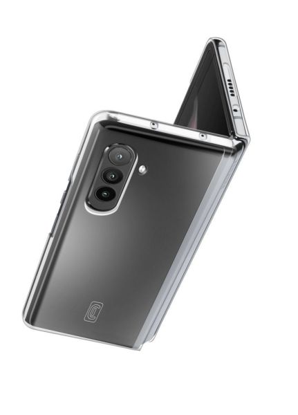A tok teljesen átlátszó, és két különálló részből áll, amelyek a telefon testét és a csuklós részt fedik. A tok vékony kialakítása tökéletesen tapad a telefonra, miközben védi annak széleit anélkül, hogy megváltoztatná a designt.