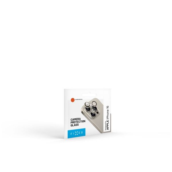 FIXED edzett üveg kamera lencsevédő Apple iPhone 15 Pro/Pro Max telefonokhoz, titanium színű, 100%-ban átlátszó