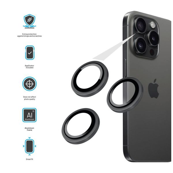 FIXED edzett üveg kamera lencsevédő Apple iPhone 16 Pro/16 Pro Max telefonokhoz, fekete