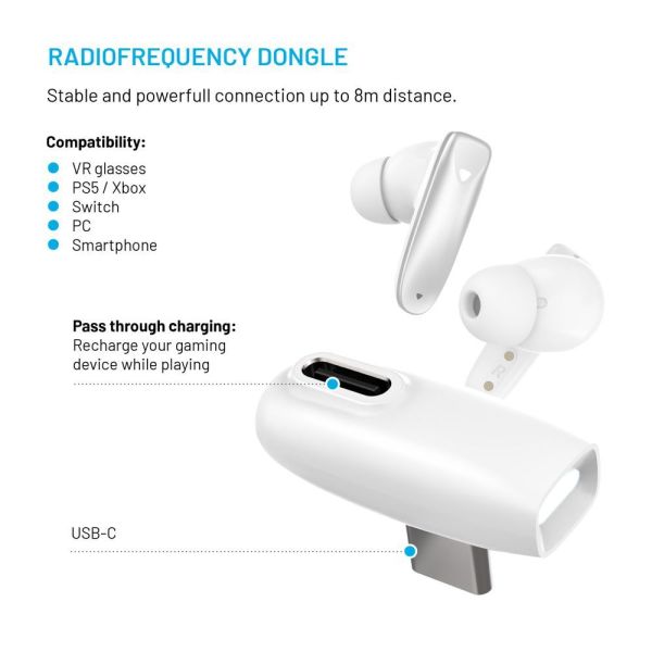 - lehetőség a játék közbeni töltésre az RF-dongle USB-C portján keresztül