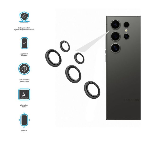 FIXED kameralencse védő biztonsági üveg Samsung Galaxy S25 Ultra telefonokhoz, fekete