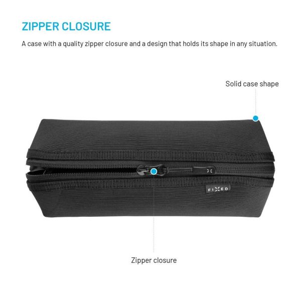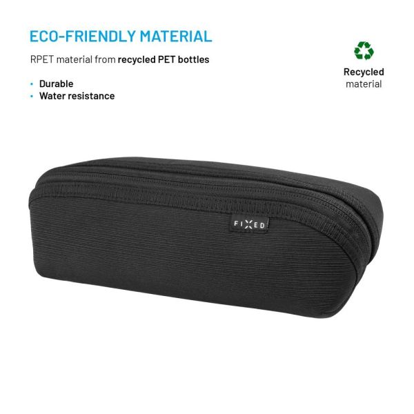 A praktikus és stílusos FIXED Camino Pack táska segít abban, hogy minden holmidat egy helyre rendezhesd. A tágas, 1,5 literes zsebben elférnek a kábelek, töltők, kisebb elektronikai eszközök és egyéb utazáshoz szükséges dolgok. Szilárd formájának köszönhetően a szervező biztonságosan a helyén tartja a tartalmát, így gond nélkül elhelyezheti bőröndjében, hátizsákjában vagy kézitáskájában. A megbízható cipzáras záródás azt is biztosítja, hogy semmi sem vész el a táskából. A táska anyaga újrahasznosított PET-palackokból készült, így könnyűségével, tartósságával tűnik ki, ugyanakkor környezetbarát is. Ideális segítője mindenkinek, aki otthon, a munkahelyén és útközben is szeretné szem előtt tartani a dolgait.