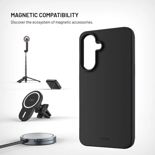 A FIXED MagFlow MagSafe-kompatibilis tok egy strapabíró színes tok, amely megbízhatóan védi iPhone-ját, és remekül is néz ki. Felülete úgynevezett folyékony szilikonból készül – ez egy könnyű, mégis tartós anyag, amely a klasszikus szilikon tokokkal ellentétben puha tapintású, nem csúszik, és kellemes a kézben tartani. Belül a tokba helyezett telefon mikroszálas bélés védi. A beépített mágneseknek köszönhetően a tok tökéletesen illeszkedik a telefonhoz, és minden MagSafe-kiegészítővel tökéletesen működik. Ezzel a vezeték nélküli töltés könnyebbé és hatékonyabbá válik, mint valaha: csak rögzítsd a MagSafe-töltőt közvetlenül a tokra. A FIXED MagFlow tok vázát edzett héj erősíti, így kiválóan ellenáll a különféle eséseknek és ütéseknek. A tok kissé kiálló szélei megvédik a telefon kijelzőjét és a kamera lencséjét a karcolásoktól, például amikor az asztalra helyezzük. A FIXED MagFlow-t pontosan az adott telefonmodellhez tervezték, tökéletesen illeszkedik, és figyelembe veszi a vezérlőgombok fedeleit, valamint a hangszórók, a töltőcsatlakozó és a kamera pontos kivágásait.