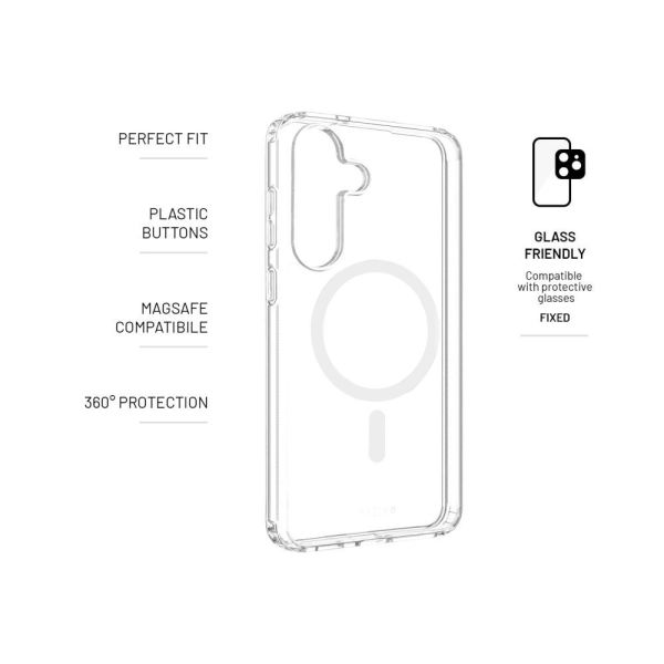 A FIXED MagSafe támogatással ellátott, edzett MagPure hátlap megbízhatóan megóvja okostelefonját a mindennapi élet minden buktatójától. A borítás sarkai és oldalai TPU-ból készültek, és ellenállnak a leejtéseknek és ütéseknek, a hátlap extra edzett polikarbonátból készült, amely ellenáll minden karcolásnak. A hátlapba integrált mágneseknek köszönhetően a MagPure borító tökéletesen együttműködik az összes MagSafe tartozékkal. A vezeték nélküli töltés minden eddiginél egyszerűbb és hatékonyabb lesz, csak kattintsa a MagSafe töltőt közvetlenül a borítóra. A borító hátoldalán a sarkokban lévő magasított élek további védelmet nyújtanak, ha asztalra helyezed, a perem körüli magasított élek pedig védik a kijelzőt. A FIXED MagPure-t pontosan az adott telefonmodellhez tervezték, tökéletesen illeszkedik, és gondol a vezérlőgombok borítására, valamint a hangszórók, a töltőcsatlakozó és a kamera pontos kivágásaira is.