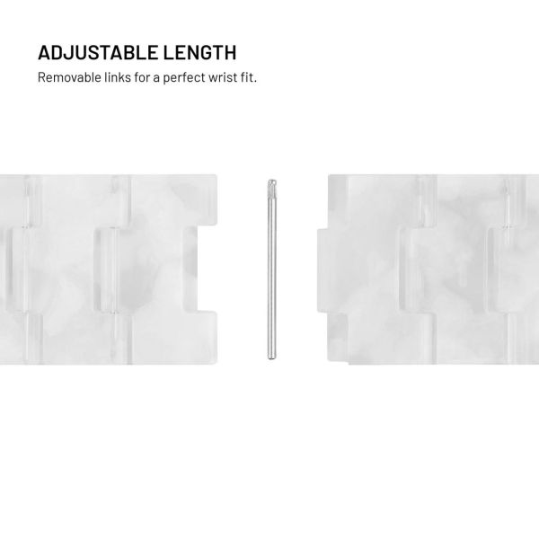Az elegáns FIXED műgyanta szíj ideális választás mindennapi viselethez és sportoláshoz egyaránt. Könnyű és lélegző, csiszolt műgyantából készül, amely kíméletes a bőrrel, és még az érzékeny bőrűek számára is alkalmas. Az UV-sugárzásnak, izzadságnak és vegyi anyagoknak való ellenállásának köszönhetően rendszeres használat mellett is megőrzi megjelenését. Ezen felül a műgyanta anyag könnyen újrahasznosítható, így környezetbarát is. A szíj alacsony súlya egész napos viselés során kényelmet biztosít, akár munkahelyen, a városban, akár sportolás közben. A finom csapokkal ellátott, levehető láncszemekből álló állítható rendszer biztosítja, hogy a szíj pontosan illeszkedjen a csuklóhoz a maximális kényelem érdekében. A kiváló minőségű fémből készült csatlakozók és rögzítések kiegészítik az összességében stílusos megjelenést és a csuklón való megbízható illeszkedést. A FIXED műgyanta szíj ötvözi a tartósságot, a kényelmet és a stílust az okosórájával.