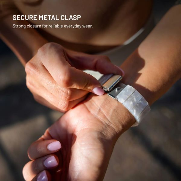 Az elegáns FIXED műgyanta szíj ideális választás mindennapi viselethez és sportoláshoz egyaránt. Könnyű és lélegző, csiszolt műgyantából készül, amely kíméletes a bőrrel, és még az érzékeny bőrűek számára is alkalmas. Az UV-sugárzásnak, izzadságnak és vegyi anyagoknak való ellenállásának köszönhetően rendszeres használat mellett is megőrzi megjelenését. Ezen felül a műgyanta anyag könnyen újrahasznosítható, így környezetbarát is. A szíj alacsony súlya egész napos viselés során kényelmet biztosít, akár munkahelyen, a városban, akár sportolás közben. A finom csapokkal ellátott, levehető láncszemekből álló állítható rendszer biztosítja, hogy a szíj pontosan illeszkedjen a csuklóhoz a maximális kényelem érdekében. A kiváló minőségű fémből készült csatlakozók és rögzítések kiegészítik az összességében stílusos megjelenést és a csuklón való megbízható illeszkedést. A FIXED műgyanta szíj ötvözi a tartósságot, a kényelmet és a stílust az okosórájával.