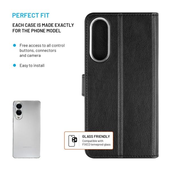 A FIXED Opus flip tok új, elegáns dizájnnal védi okostelefonját a mindennapi élet minden buktatójától. Pontosan az adott telefonmodellhez van tervezve, és annak minden részét, beleértve a kijelzőt is, lefedi. Az Opus tok tartós műbőrből készült, a szélein varrással, ellenáll a durva bánásmódnak, miközben a tok méltó megjelenése megmarad. Vékony kialakításának köszönhetően a tok csak minimálisan növeli a telefon méreteit, és kényelmesen elfér zsebben vagy kézitáskában. Az elülső rész kinyitása után egy nagyobb zseb található a bankjegyek számára, valamint három kisebb rekesz a bankkártyák tárolására. A tokot egy mágneses zárral ellátott csat zárja biztonságosan. A nyitott tok vízszintesen állítható álló helyzetbe állítható a kényelmes videónézéshez. A FIXED Opus tok a megfelelő kiegészítő telefonjához, amely megvédi azt az esésektől, karcolásoktól és szennyeződésektől, és emellett jól is néz ki.
