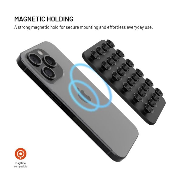 A FIXED MagMate szilikonos tapadókorongos tartó MagSafe rögzítéssel egyszerű módot biztosít arra, hogy a telefonodat szem előtt tartsd anélkül, hogy a kezedben kellene tartanod. A tapadókorongos oldal szilárdan tartja a tükör, üveg vagy más sima felület, míg a MagSafe mágnes biztonságosan rögzíti az iPhone 12 és újabb iPhone készülékeket vagy bármely MagSafe tokkal ellátott telefont. Így könnyedén készíthetsz fényképeket, videókat, vagy szem előtt tarthatod a telefon képernyőjét főzés, edzés vagy sminkelés közben. Az öntapadós alternatívákkal ellentétben nem rögzül szilárdan a telefonhoz, de a mágneses rögzítésnek köszönhetően bármikor könnyedén eltávolítható. A prémium minőségű Liquid szilikonból készült felület mosható, tartós és ugyanakkor kellemes tapintású. Az ultravékony, 7 mm-es kialakításnak köszönhetően a tartó beleolvad a telefonba, és alig növeli annak méretét. A FIXED MagMate minimalista megoldása megkönnyíti a telefon mindennapos használatát, bárhol is legyen.
