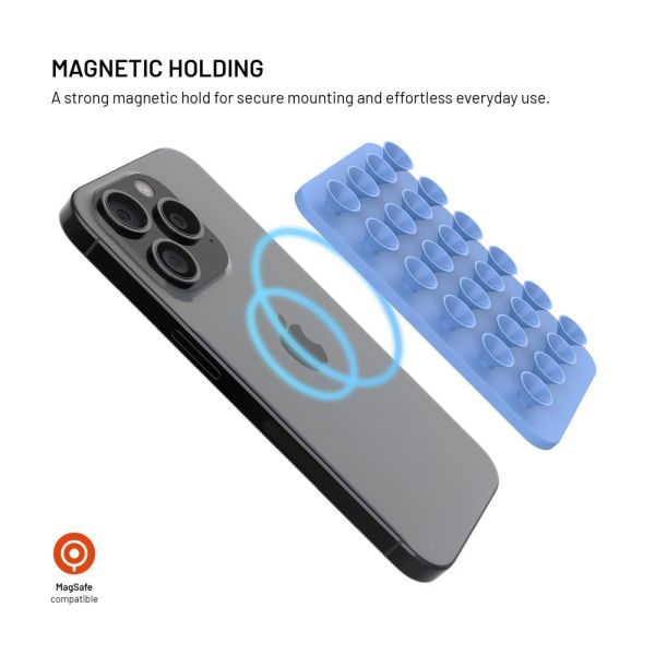 A FIXED MagMate szilikonos tapadókorongos tartó MagSafe rögzítéssel egyszerű módot biztosít arra, hogy a telefonodat szem előtt tartsd anélkül, hogy a kezedben kellene tartanod. A tapadókorongos oldal szilárdan tartja a tükör, üveg vagy más sima felület, míg a MagSafe mágnes biztonságosan rögzíti az iPhone 12 és újabb iPhone készülékeket vagy bármely MagSafe tokkal ellátott telefont. Így könnyedén készíthetsz fényképeket, videókat, vagy szem előtt tarthatod a telefon képernyőjét főzés, edzés vagy sminkelés közben. Az öntapadós alternatívákkal ellentétben nem rögzül szilárdan a telefonhoz, de a mágneses rögzítésnek köszönhetően bármikor könnyedén eltávolítható. A prémium minőségű Liquid szilikonból készült felület mosható, tartós és ugyanakkor kellemes tapintású. Az ultravékony, 7 mm-es kialakításnak köszönhetően a tartó beleolvad a telefonba, és alig növeli annak méretét. A FIXED MagMate minimalista megoldása megkönnyíti a telefon mindennapos használatát, bárhol is legyen.