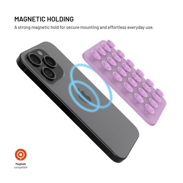 A FIXED MagMate szilikonos tapadókorongos tartó MagSafe rögzítéssel egyszerű módot biztosít arra, hogy a telefonodat szem előtt tartsd anélkül, hogy a kezedben kellene tartanod. A tapadókorongos oldal szilárdan tartja a tükör, üveg vagy más sima felület, míg a MagSafe mágnes biztonságosan rögzíti az iPhone 12 és újabb iPhone készülékeket vagy bármely MagSafe tokkal ellátott telefont. Így könnyedén készíthetsz fényképeket, videókat, vagy szem előtt tarthatod a telefon képernyőjét főzés, edzés vagy sminkelés közben. Az öntapadós alternatívákkal ellentétben nem rögzül szilárdan a telefonhoz, de a mágneses rögzítésnek köszönhetően bármikor könnyedén eltávolítható. A prémium minőségű Liquid szilikonból készült felület mosható, tartós és ugyanakkor kellemes tapintású. Az ultravékony, 7 mm-es kialakításnak köszönhetően a tartó beleolvad a telefonba, és alig növeli annak méretét. A FIXED MagMate minimalista megoldása megkönnyíti a telefon mindennapos használatát, bárhol is legyen.