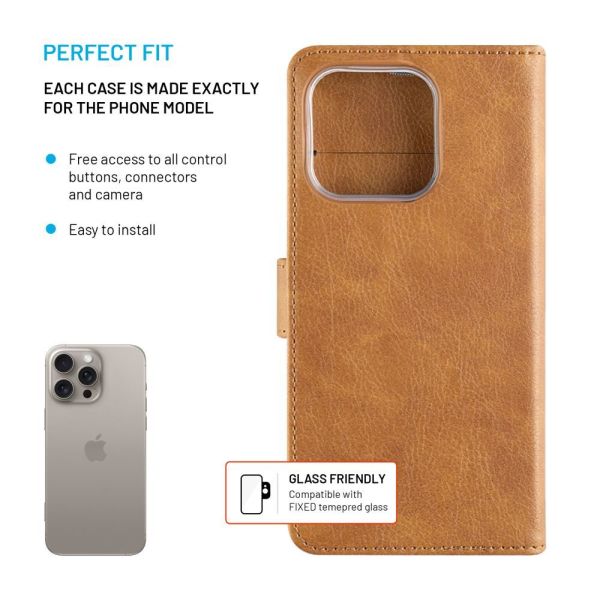 FIXED Opus oldalra nyíló telefontok Apple iPhone 16 Pro Max készülékhez, barna