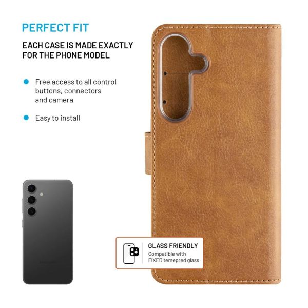 FIXED Opus oldalranyíló telefontok Samsung Galaxy S25 telefonhoz, barna